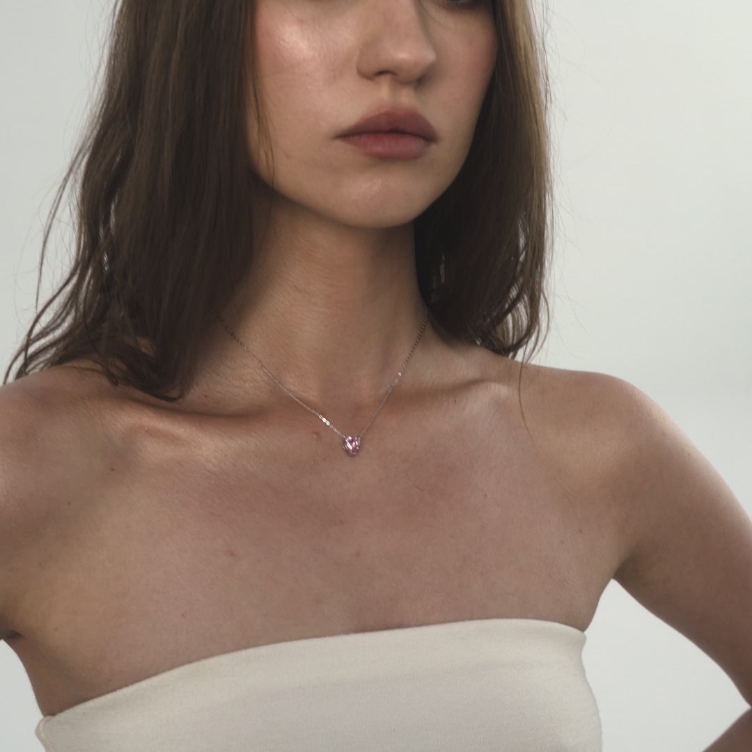 Naszyjnik Crystal Heart Pink przyciąga uwagę centralnym różowym kryształem IS oszlifowanym w kształt serca - ponadczasowego symbolu miłości, emocji i bliskości. Delikatna oprawa podkreśla głębię koloru kamienia, a precyzyjny szlif sprawia, że naszyjnik pięknie odbija światło i subtelnie mieni się przy każdym ruchu.