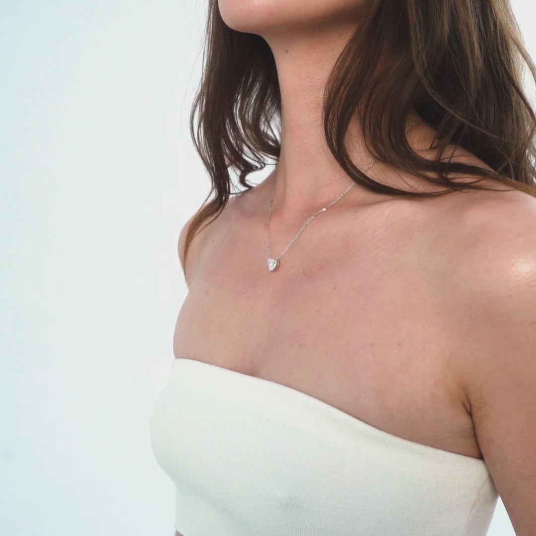 Naszyjnik Crystal Heart White zachwyca centralnym białym kryształem IS oszlifowanym w kształt serca - symbolem czystości, harmonii i ponadczasowej elegancji. Jasna barwa kamienia w połączeniu z precyzyjnym szlifem nadaje biżuterii wyjątkowego blasku, który subtelnie odbija światło i podkreśla jej szlachetny charakter.
